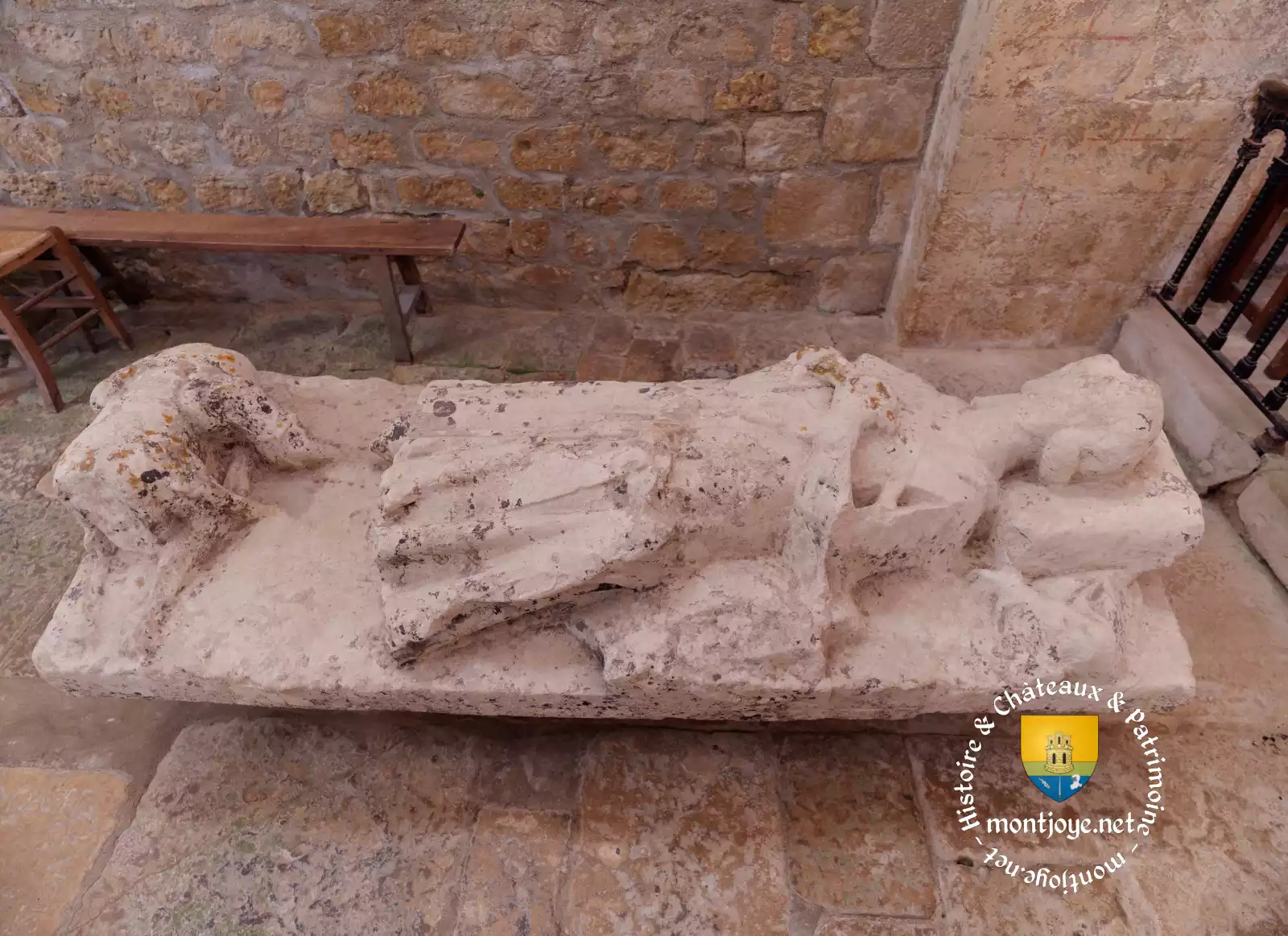 Un gisant du XIIIe siècle représentant un chevalier, provenant de l’ancienne commanderie templières de Roche à Cloué, il a subi les outrages du temps.