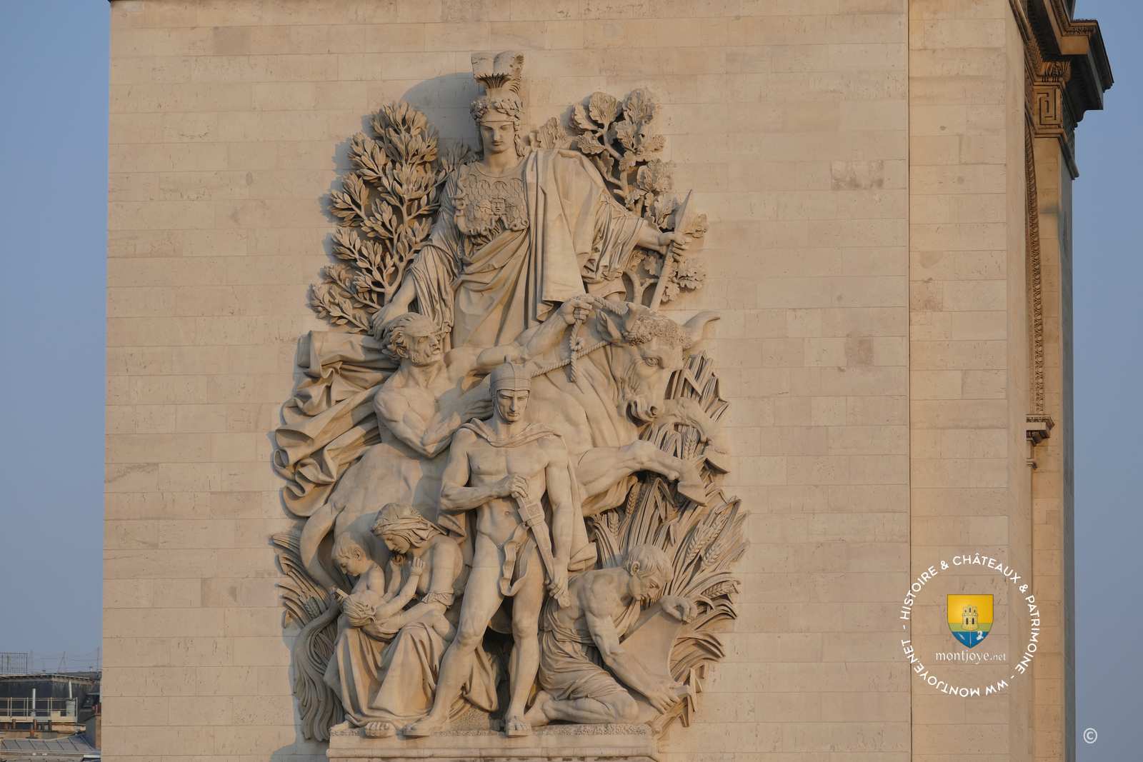 L’arc de Triomphe sur la place de l’étoile, devenue place Charles de Gaulle, est un monument édifié à la demande Napoléon Ier après la bataille d'Auzterlitz sur l'ancienne colline du Roule ( Le Roulle ). Il fut réalisé par l’architecte Jean-François-Thérèse Chalgrin sur une période s’étalant de 1806 à 1836. Initialement l’Arc de Triomphe de l’Etoile fait 49.54 de hauteur pour 44.82 de largeur. L'Arc de Triomphe pèse environ 50 000 tonnes, mais le massif de fondations a été renforcé pour éviter un affaissement du terrain pèse environ également 50 000 tonnes.