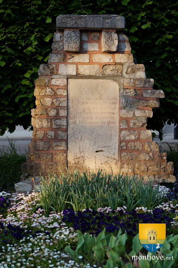 Monument relatant la bastille Saint-Loup, aujourd'hui dans la rue du Faubourg de Bourgogne qui fut l'ancienne route Romaine. C'est sur ce chemin que Jeanne et Dunois attaquèrent la Bastille Saint-Loup.