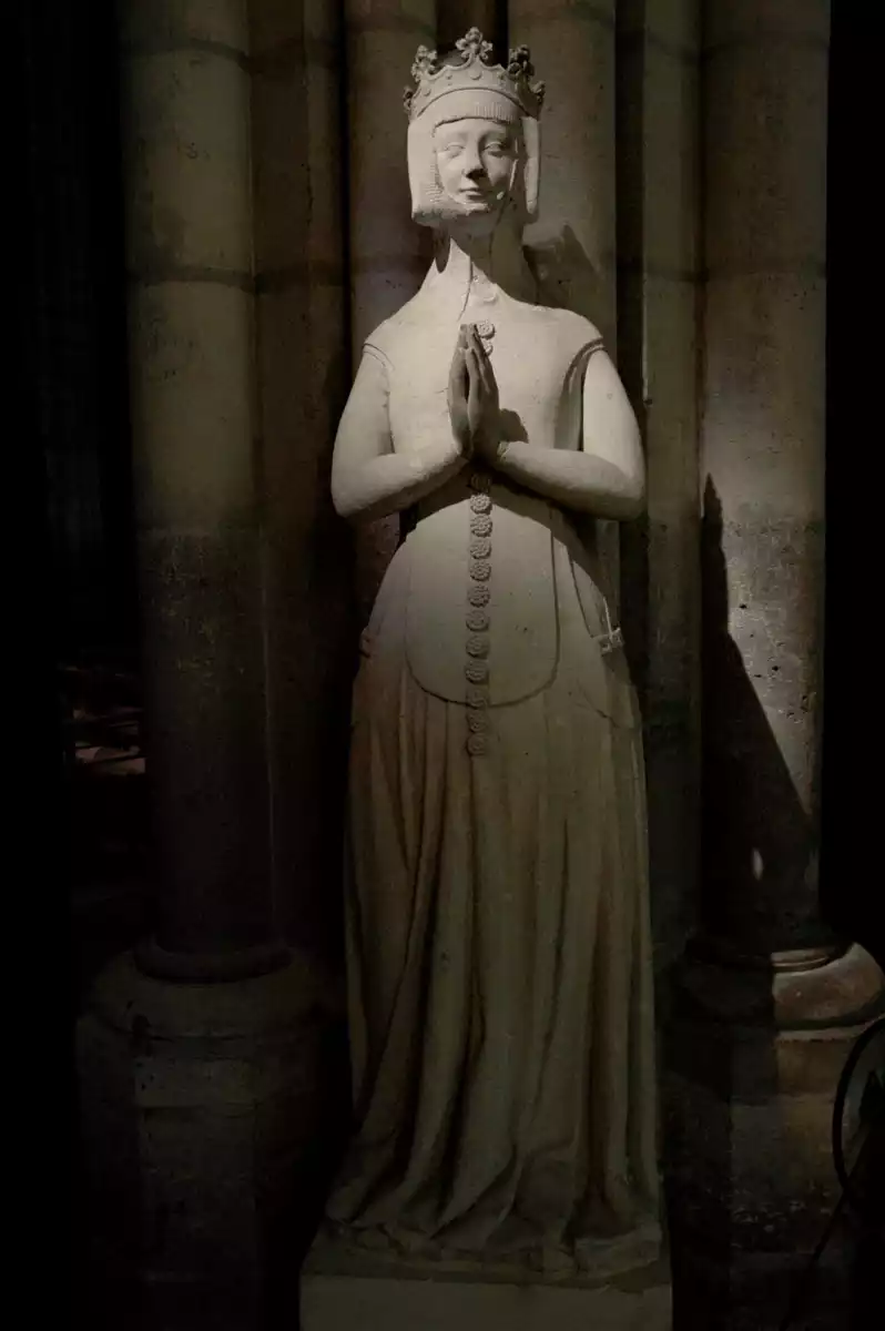 Béatrice de Bourbon, née en 1320 et morte le 23 décembre 1383, fut reine de Bohême, fille de Louis Ier, duc de Bourbon, comte de Clermont et de la Marche, et de Marie d'Avesnes, et l'épouse de Jean Ier de Bohême. Elle fut veuve en 1346 après la mort de Jean de Luxembourg à la bataille de Crécy. Initialement son tombeau était dans l'église des Jacobins à Paris. Sa statue s'apparente beaucoup aux statues et réalisations de la salle des Pas-Perdus du palais de Justice de Poitiers, peut-être une œuvre de Jean de Liège.