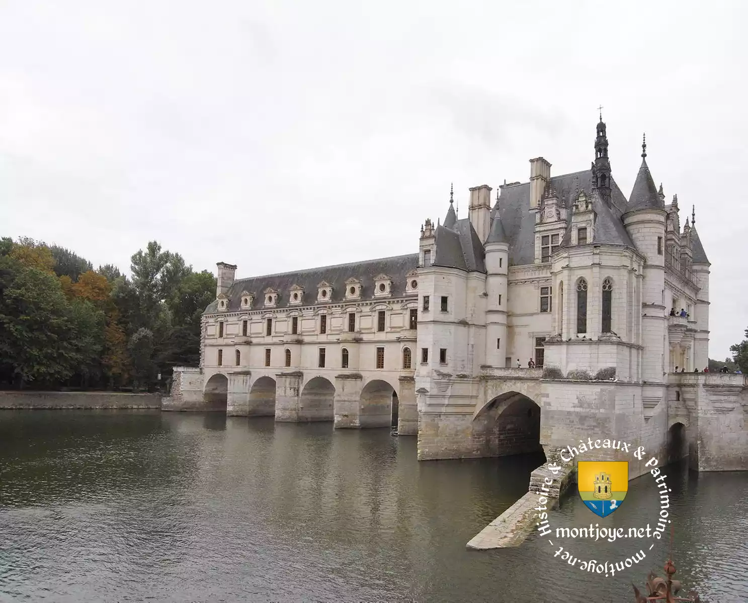 Le château de Chenonceau est situé dans la ville de Chenonceaux, dans le département d'Indre-et-Loire, dans la région Centre Val de Loire. Le château de Chenonceau fait partie des nombreux châteaux de la Loire, on l'appelle souvent le château des dames car de nombreuses femmes ont participé à son embellissement. Il est installé sur des piles d’un pont qui était auparavant un moulin fortifié puis un château fort. La tour des Marques est un des éléments rescapés du fort, probablement l'ancien donjon, de taille cependant assez modeste. La base du château actuel fut bâtie par Thomas Bohier, secrétaire général des finances du roi François Ier. L'intérieur du château est assez remarquable, il permet de voyager à travers le temps dans des pièces meublées et d'époques différentes. Son pont avec sa galerie qui parait d'une légèreté déconcertante pèse tout de même 20 000 tonnes et fut créé par Philibert Delorme en partie.