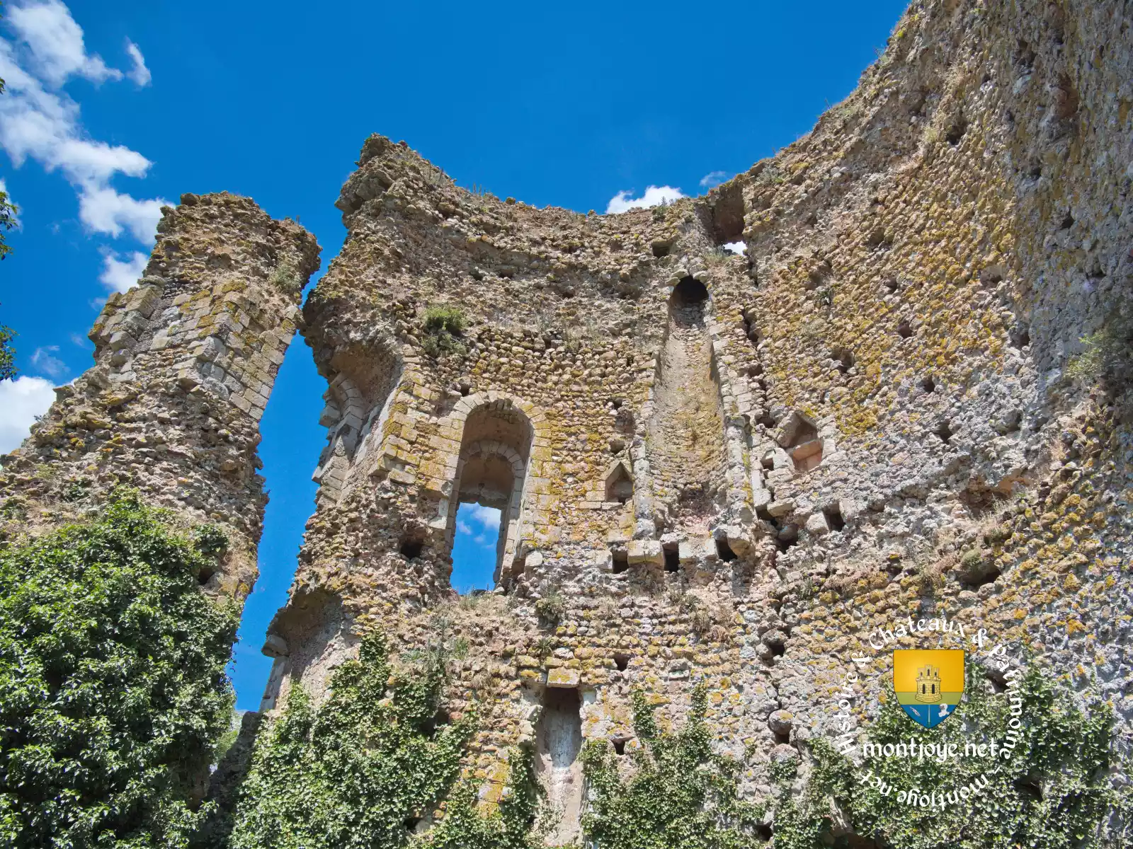 Le donjon est installé sur un éperon rocheux, ancien emplacement d'une église romane de Saint-Victor.