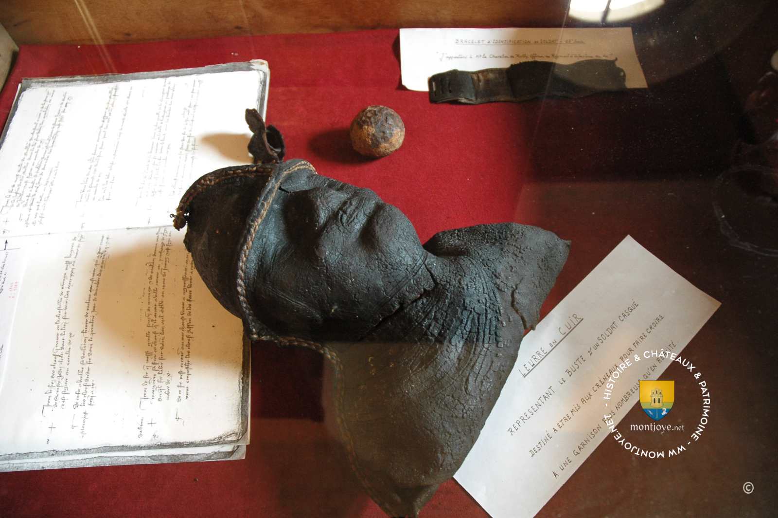Une pièce très rare, jamais vu ailleurs, est ce leurre en cuir qui est sensé représenter un soldat en faction derrière les créneaux, certes de près il parait peu vraisemblable ( il a tout de même beaucoup vieillit le bougre ! ) mais à une certaine distance ça doit être plutôt efficace.