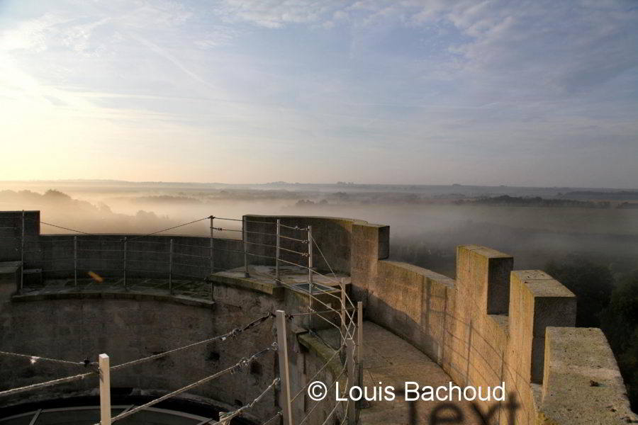 Un deuxième étage avec cheminée, plus haut de plafond, permet au seigneur d’y vivre et s’y réfugier. Le troisième étage est rajouté au XIVe siècle, ainsi qu’un autre permettant la défense du donjon, c’est à cette époque que sont rajoutées les échauguettes avec encorbellement et les latrines au premier et deuxième étage. Le donjon au XIVe à une hauteur de 24.5 mètres environ.