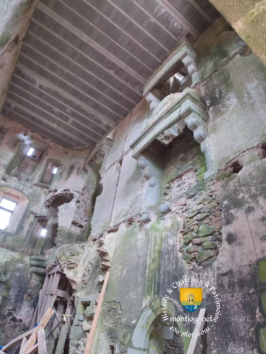 Les différentes salles du château, on remarquera les cheminées et la chape de béton et de parpaing mettant hors d'eau l'ensemble des intérieurs.