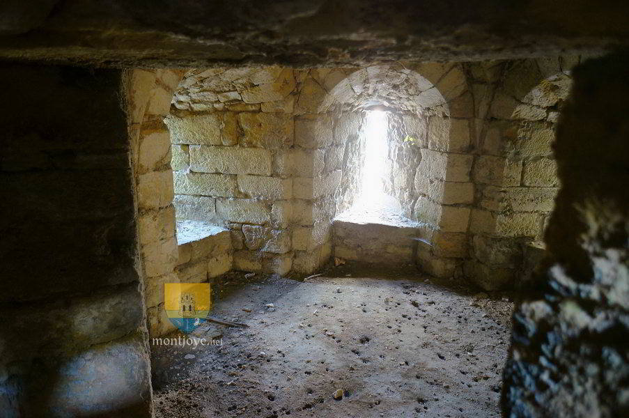 Porte Saint-Jean , le système complexe était fermé par une herse, puis un sas à assomoir, d'une nouvelle herse fermée par une porte à deux vantaux. Sur la droite, l'intérieur d'une tour de la porte Saint-Jean