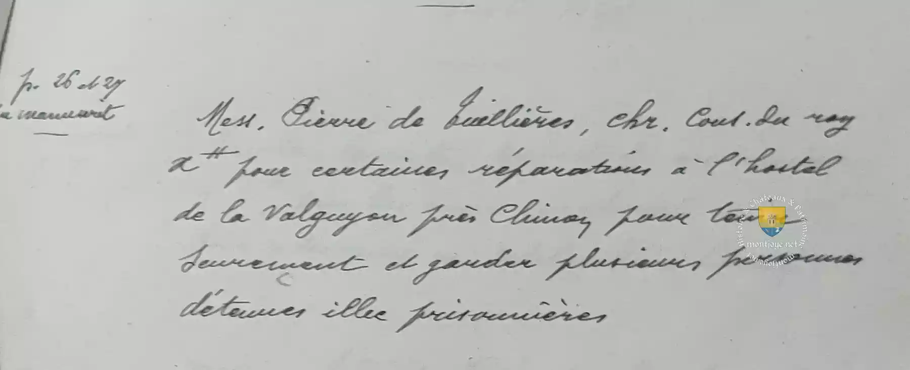 Entre 1445 et 1446, l'Hôtel de Valguyon est probablement utilisé accessoirement comme prison. Selon les comptes de Jean de Xaincoins ( ou Saincoins ) receveur général des finances de Charles VII, établis une note dans les comptes pour restauration afin de garder "plusieurs personnes détenues prisonnières".