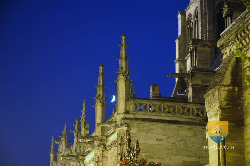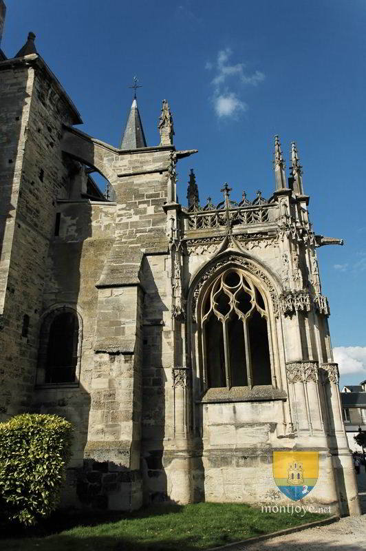 Clocher occidental de la Collégiale de Poissy, on remarque sur la gauche la tourelle défensive