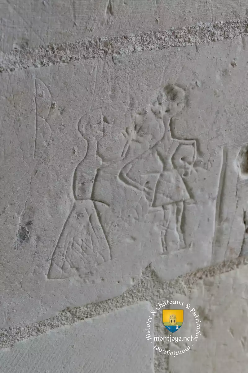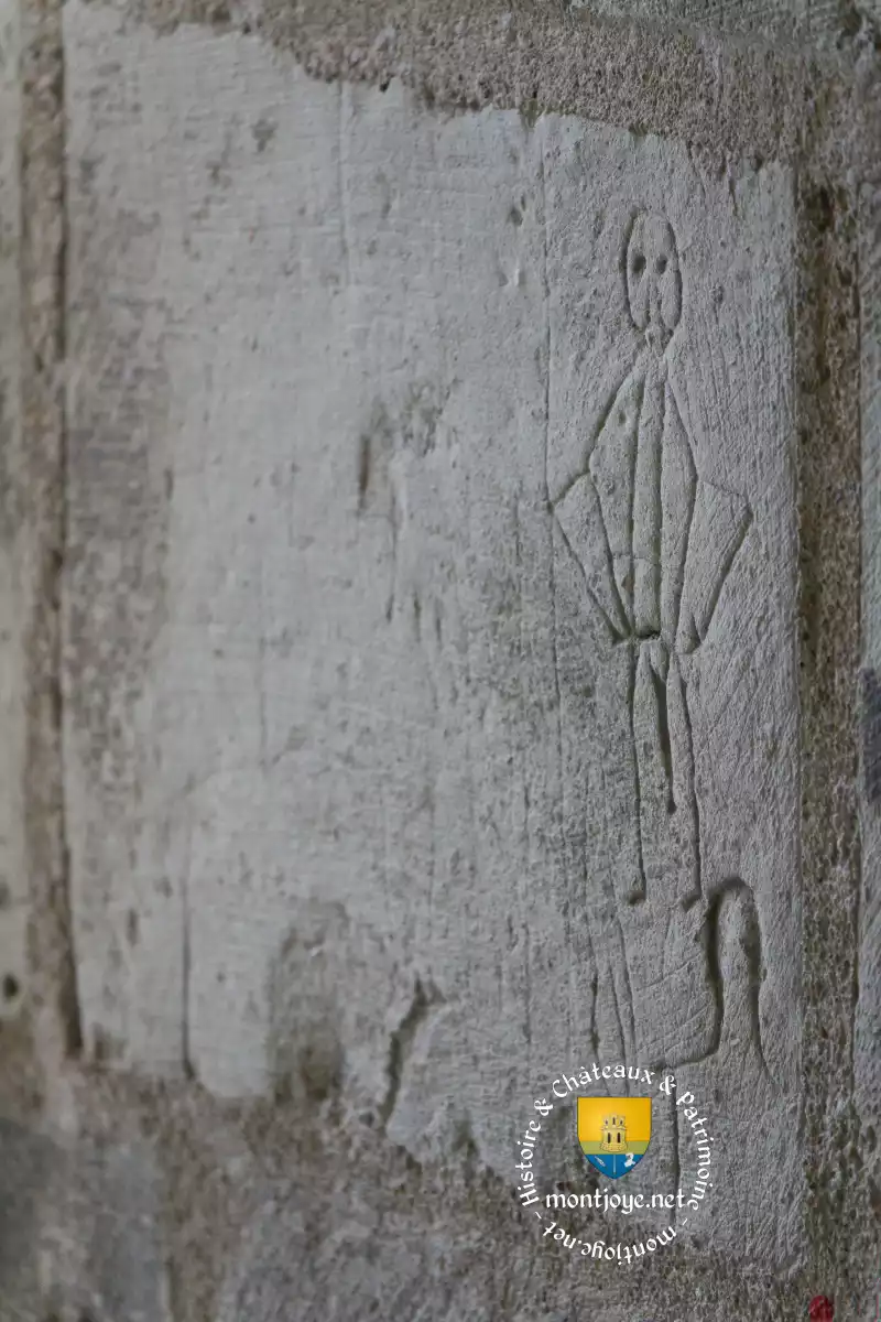 A l'intérieur des traces de décor peint subsistent, ainsi que des peintures murales du XIVème siècle en mauvais état représentant :