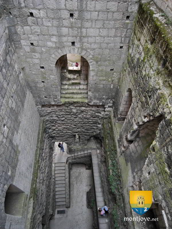 La photo du haut représente  une maquette de la fortification du Donjon au XIIIe, selon une étude de Jean Mesqui.