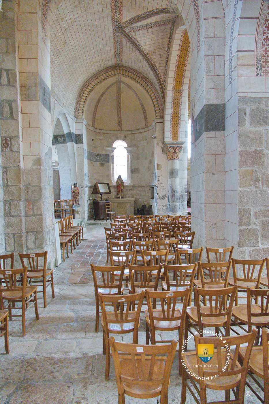 Elle a la particularité de n'avoir qu'une seule absidiole, en général il y en a deux.Elle conserve des polychromies du XIVe et XVe siècle, ce qui en fait une des plus jolies églises peintes du département.