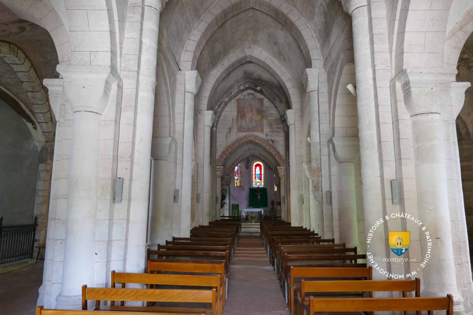 Visible de loin, le clocher qui s'élève à la croisée est l'un des plus beaux de la région. Un premier niveau roman à base carrée supporte un étage gothique plus étroit de plan octogonal, terminé par une flèche lancée au XVIIe siècle.