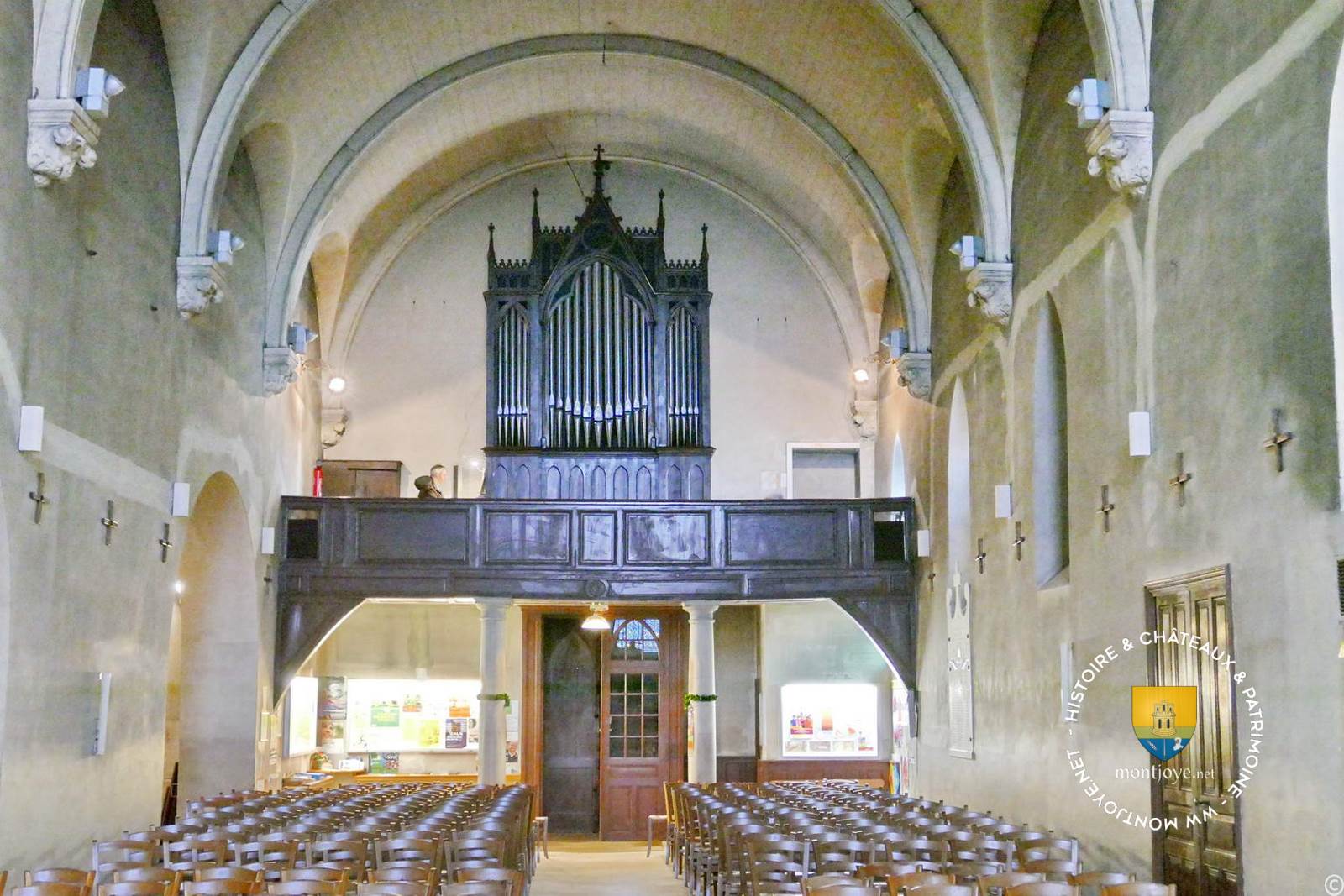 Cette partie construite au XIIIe avec le clocher est facilement identifiable par ses voutes gothiques au fond de l'église