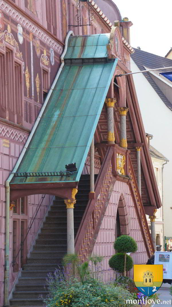 Le premier Hôtel de ville, appelé à l'époque Rothüss, fut construit en 1432 mais détruit en 1551, il est reconstruit entre 1552 et 1553 dans le style de la Renaissance rhénane, sur le même emplacement. Le tailleur de pierre Michel Lunthumer en est l'architecte principal et la première peinture murale a été faite Christophe Bock avec une couleur rouge et or qui impressionna alors beaucoup Montaigne qui en 1580 décrira le bâtiment comme un « palais magnifique et tout d'or » dans son livre « voyage à travers l'Europe » plus principalement dans la partie concernant l'Alsace et la Suisse qu'il visite entre 1580 et 1581.