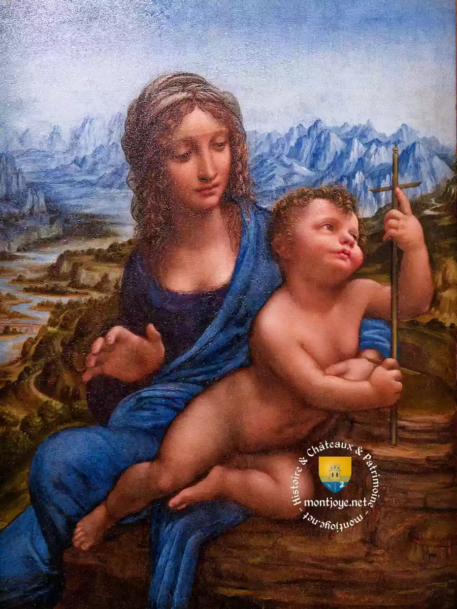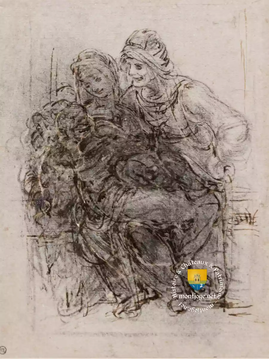 La Vierge, l'enfant Jésus et sainte Anne est une grande peinture à l'huile réalisée par Léonard de Vinci à la fin du XVe siècle. Cette œuvre représente la Vierge Marie assise sur les genoux de sa mère, sainte Anne, tenant l'enfant Jésus sur ses genoux. La composition de l'œuvre est très soignée, avec les personnages disposés en un groupe compact, sous un arbre. La technique de peinture utilisée par Léonard de Vinci, avec des effets de lumière subtils et une grande attention aux détails, crée une impression de réalisme et de profondeur.