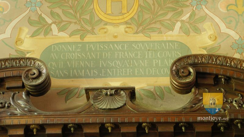D’une hauteur de 6 mètres , les emblèmes et devises en latin et en grec d’Henri II et de Catherine de Médicis :