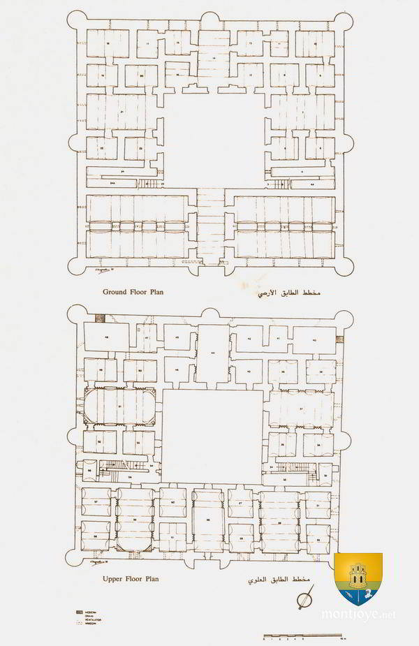 Les deux grandes salles de chaque côté de l'entrée, donnant directement sur celle-ci par quatre ouvertures laisse à penser qu'il fallait loger un nombre important de personnes, probablement la garde. Par ailleurs à la différence du premier étage les salles ne sont pas sectionnées en petits « appartements » et elles ne donnent pas directement sur d'autres pièces ou la cour.