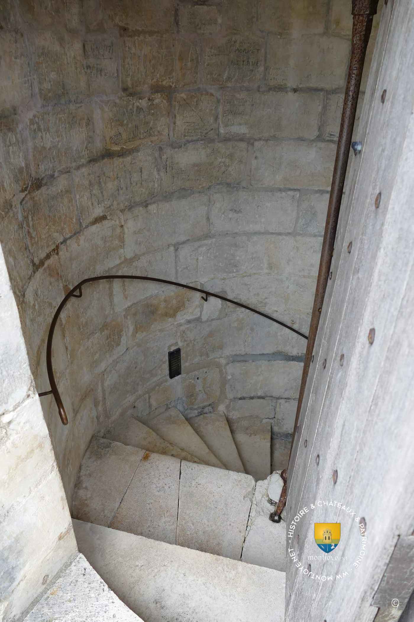 Néanmoins aucun élément historique ne permet aujourd’hui d’identifié avec certitude son commanditaire d’autant qu’il faut noter que le donjon de la Roche-Guyon comporte la même caractéristique en forme d’amande effilée.