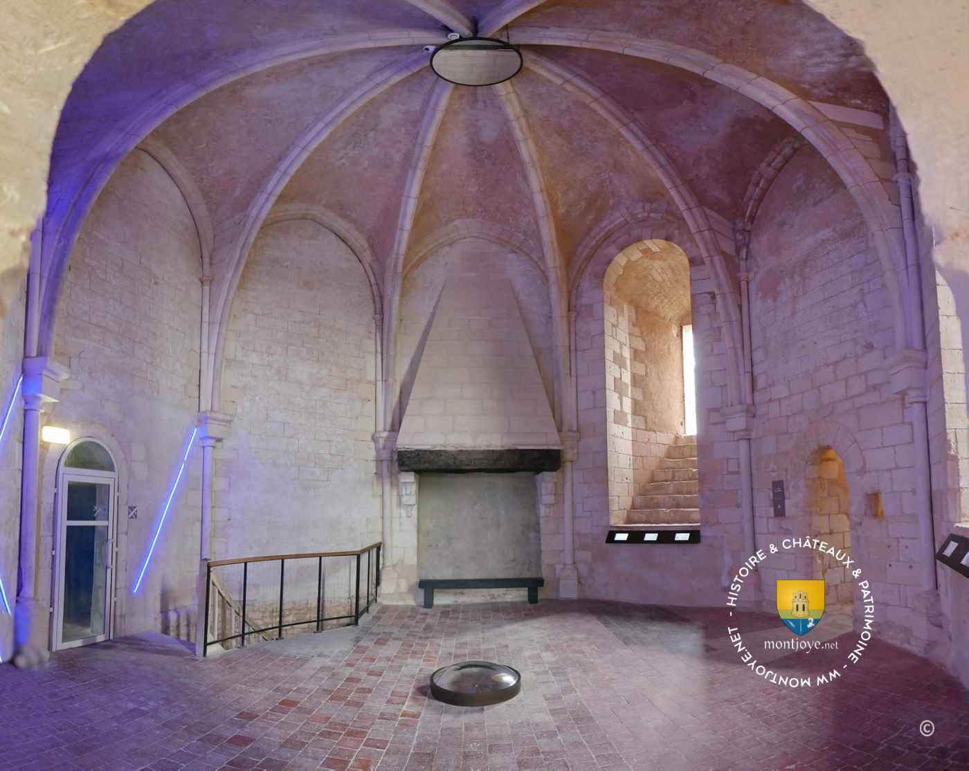 Salle d'Honneur du donjon, située au Ier étage, avec son puits ( sur la droite ) et sa cheminée.