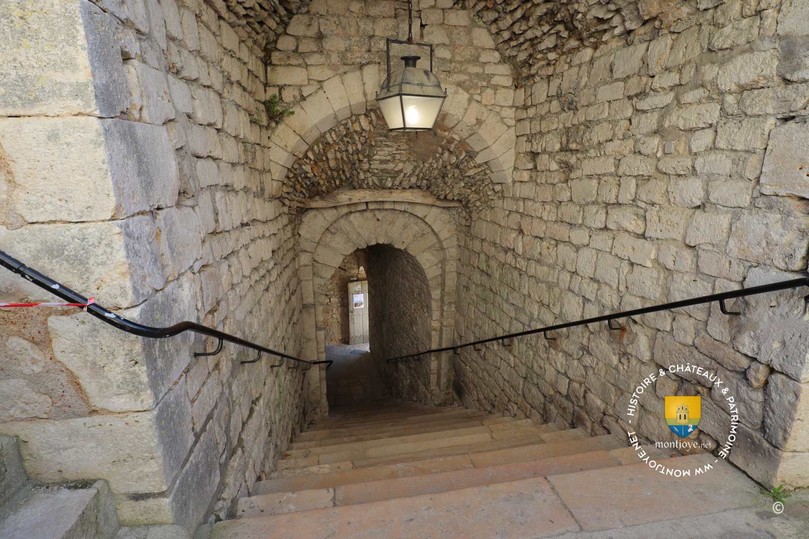 On entre aujourd'hui au Ier étage qui était en réalité la Salle Haute, qui fut probablement en partie la Salle des Gardes,, salle avec voûte formée de quatre arcades ogivales, appuyées sur quatre larges corbeaux saillants à une hauteur de 4,50 m, en dessous ce trouve le cellier. La salle des gardes est l'axe centrale de communication vers la chambre du Gouverneur ( avec cheminée ), la Salle Basse , les chemins de ronde et les prisons accessibles par des escaliers très étroit intégré dans l'épaisseur des murs.