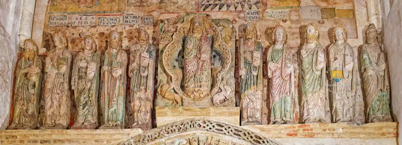 Les apôtres en détail avec un christ Tétramorphe au centre.
