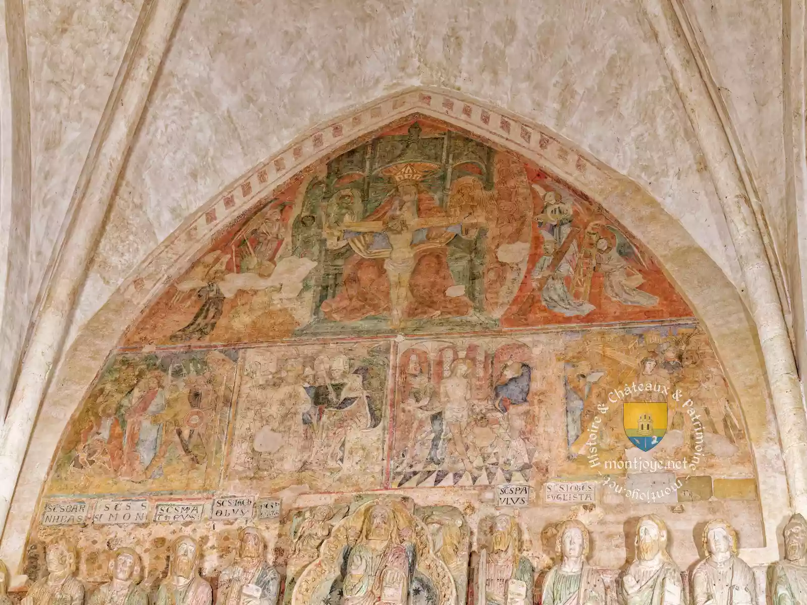 Au-dessus du portail se trouve un décor peint sur 26 m2 datant de la seconde moitié du xve siècle, représentant des scènes de la Passion du Christ, sous un arc brisé.
