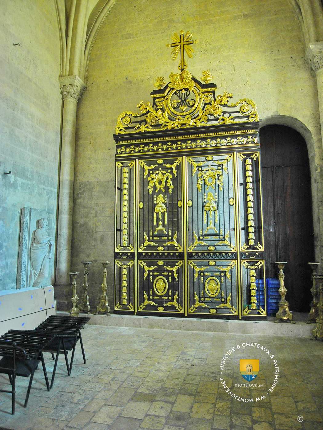 A la baie de gauche saint Léon et saint Ambroise apparaissent rigides, comme il sied à des Docteurs ; saint Nicolas, toujours bienfaisant, esquisse une bénédiction et le personnage qui représente l’apôtre des Gaules, saint Martin, est plein de grandeur et de dignité. Plus loin, c’est saint Jérôme avec le livre des Ecritures, il semble que l’artiste ait voulu lui donner un air d’austérité pour nous rappeler ses longs jeûnes au désert et ses études ardues sur les textes sacrés. Sur les deux derniers socles sont posés deux moines méditatifs, saint Laumer et saint Avit.
