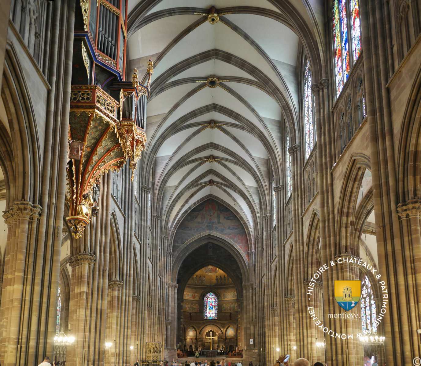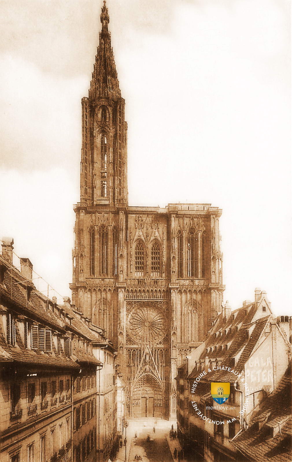 La cathédrale a été construite à partir de 1015 et a commencé dans le style roman, bien qu'elle ait ensuite été continuée selon les canons de l'architecture gothique française et allemande à partir de 1179 , les travaux ont continué jusqu'en 1439. Bien que des parties importantes tiennent de l'architecture romane, le monument est largement considéré être parmi les meilleurs exemples d’architecture gothique haute ou tardive. Erwin von Steinbach est crédité pour les contributions majeures de 1277 à sa mort en 1318 et par Joist Dotzinger.