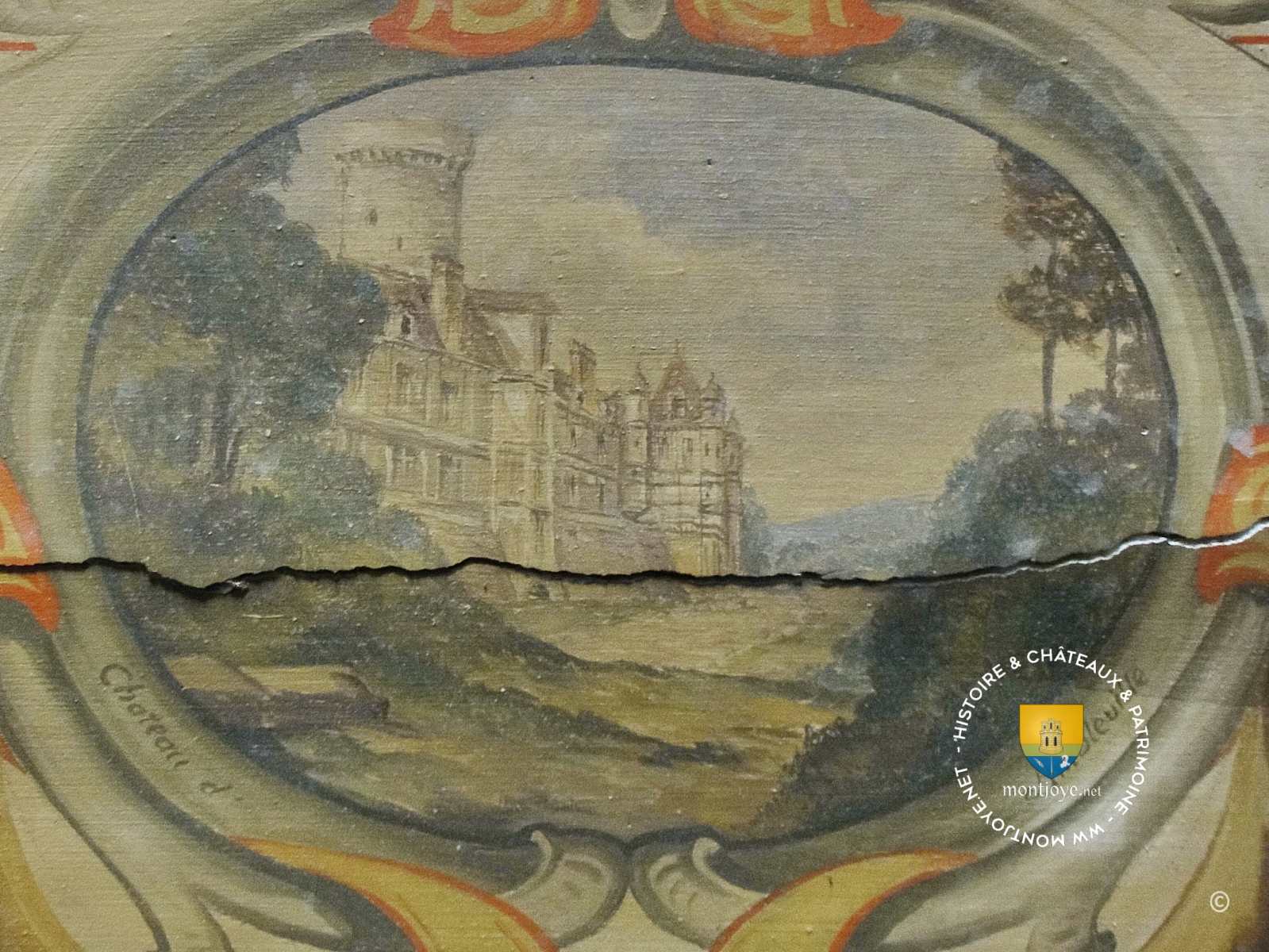Le château : Si le château actuel est un amalgame de château médiéval et d'inspiration d'art italien, il en reste néanmoins plus de la renaissance que du moyen âge. Si aujourd'hui il ne reste aucune trace ou presque, il y avait un donjon comme ce dessin le laisse supposer. Cependant notons que la tour semble bien haute, il s'agit probablement d'une vue d'esprit dans le but de magnifier et de présenter la tour/donjon. Il semble que les souterrains devaient y mener directement , ce qui semble plus crédible que des souterrains vers Gisors ( a noté que le propriétaire y effectue des travaux en 2010 pour les faire visiter en partie ). Le positionnement du donjon était assez intéressante car surplombant quasiment la route.