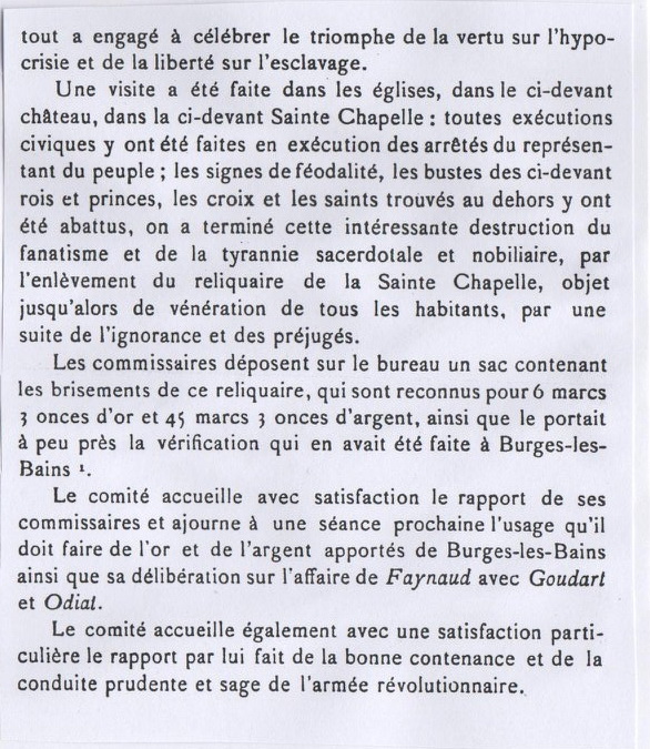 Les Condé ayant fait partie des premiers émigrés en août 1789, leurs biens furent confisqués, seules les trois tours du front nord ne furent pas soumises aux ventes par adjudication. Le directoire de district de Cérilly fit adjuger les restes des Saintes Chapelles et du château le 8 pluviôse an II. Les tours furent utilisées comme supplément de la maison d'arrêt. La tour Qui-Qu'en-Grogne fut elle-même conservée à cet effet. ( source wikipedia ).