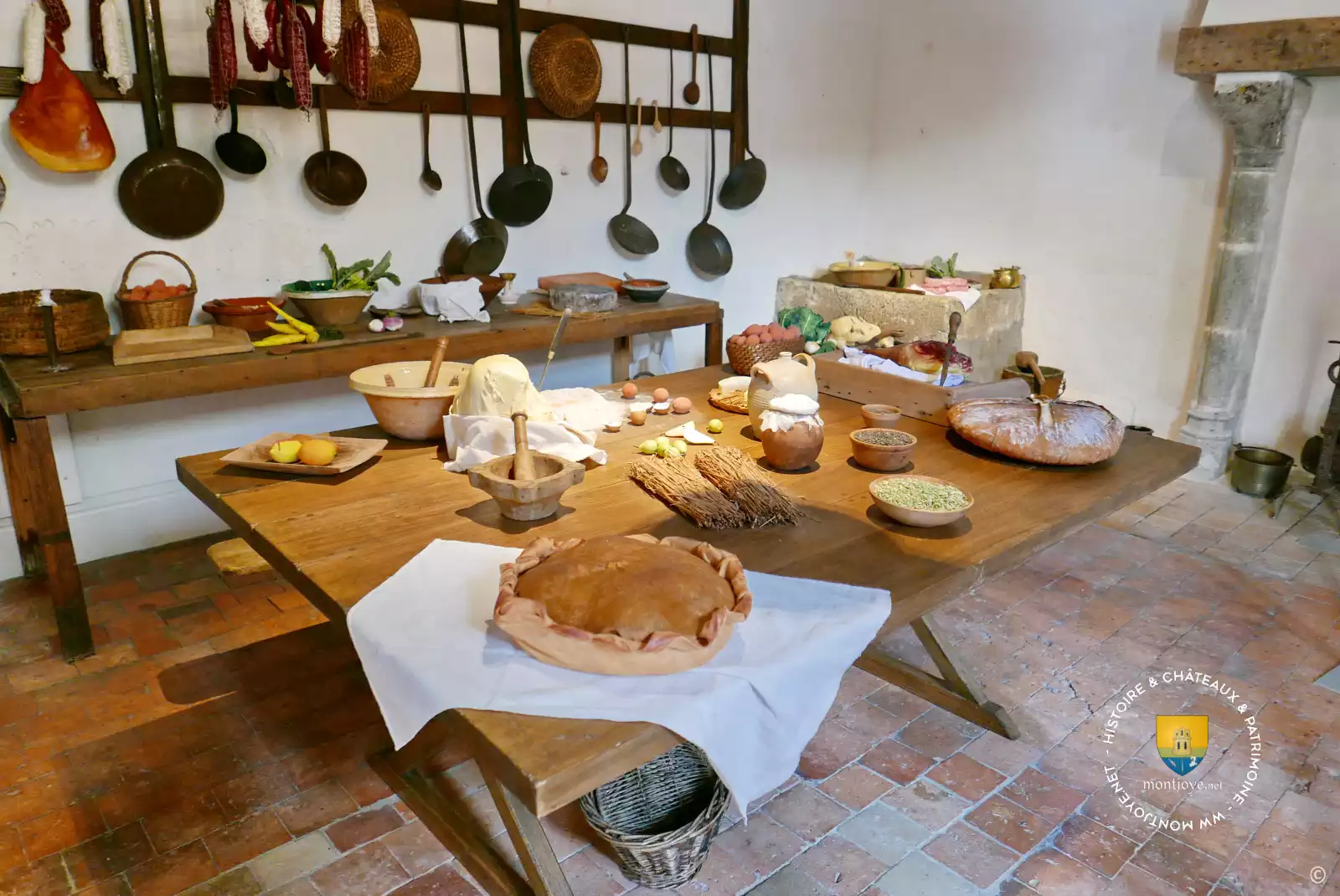 Les charpente des combles, dit le Grenier aujourd'hui, sont en carène de bateau, les sols en tomettes terre cuite et pierre, les murs en moellons enduits." (2)