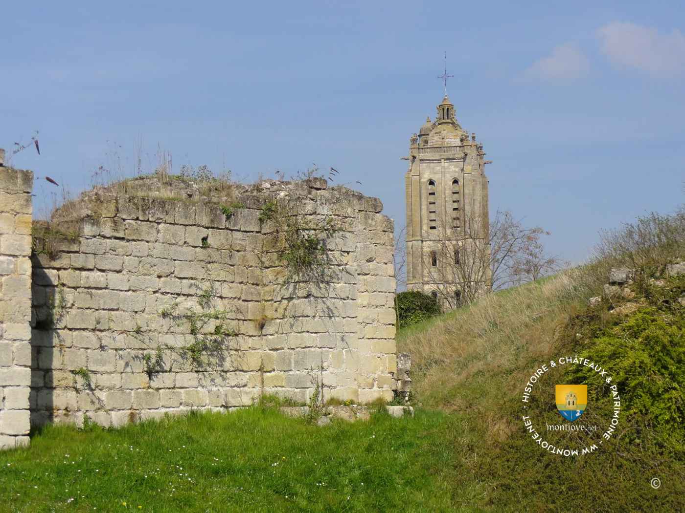 Le château que nous voyons aujourd'hui a peut-être été construit par le comte Mathieu entre 1080 et 1155, il édifia également le château et la Tour Montjoie, Conflans-Sainte-Honorine. Il possédait un donjon roman rectangulaire à contreforts plats de vingt-cinq mètres de haut et cinq de large dont nous voyons aujourd'hui quelques restes.