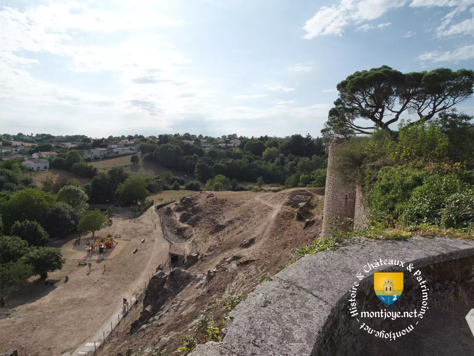 Un donjon rectangulaire (B), garni de contreforts, remplaça le donjon primitif, et une porte d'accès (C) fut ménagée sur le bord abrupt du coteau. De là, partit un grand mur (C D) également en blocage, et au point (D) fut placée une nouvelle porte identique à la première comme forme et comme dispositions.