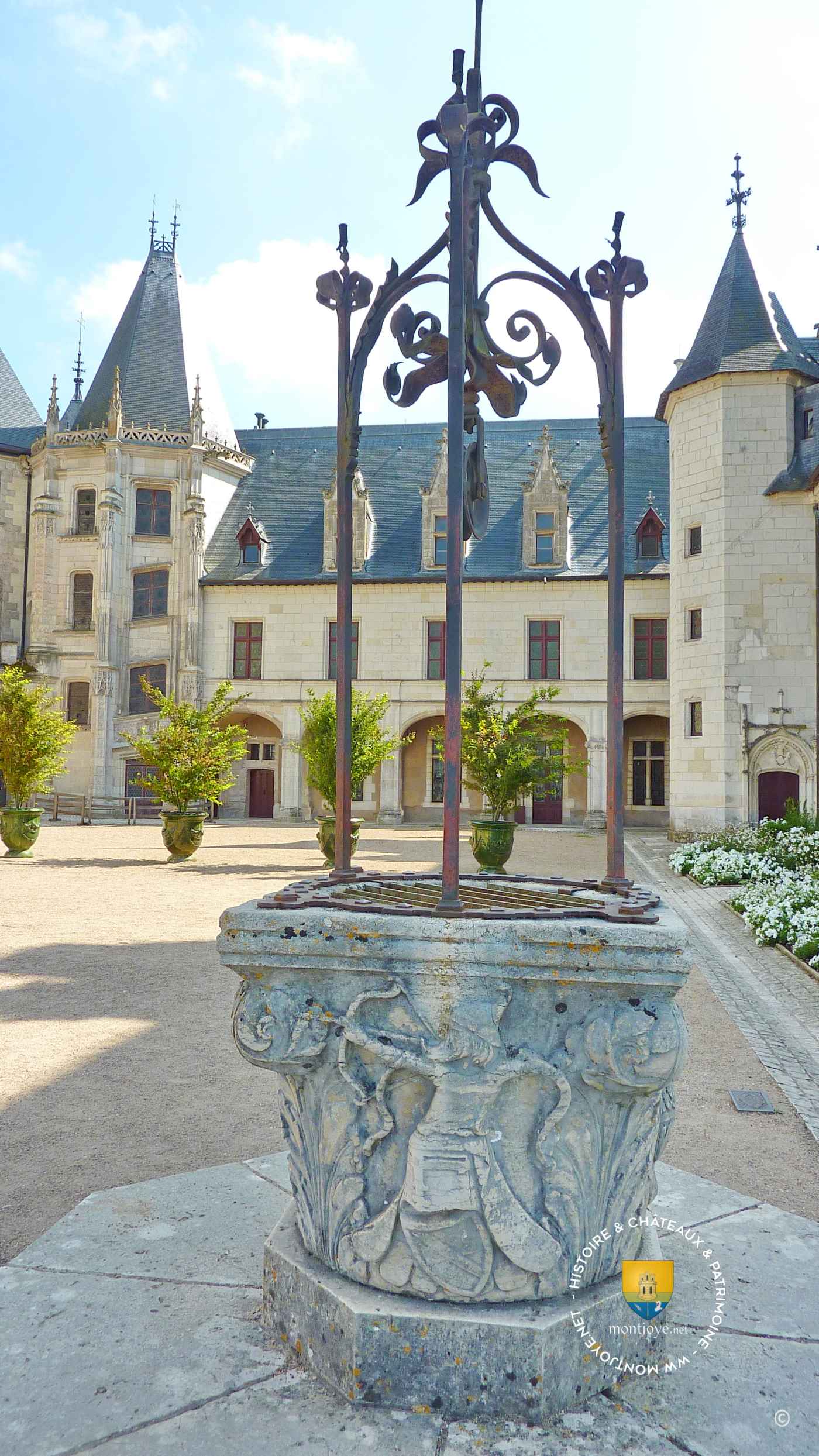 Le Château de Chaumont-sur-Loire Il est situé sur un promontoire au dessus de la Loire, quasiment à mi-chemin entre Blois et Amboise, dont les familles des villes du même nom se sont partagé le domaine primitif. Il a gardé un aspect défensif imposant vu de l’extérieur tandis que la cour intérieure est dans un style gothique flamboyant tardif, il annonce de façon éclatante les styles de châteaux de la Loire sous François Ier. Il accueille depuis 1992 le festival international des jardins.
