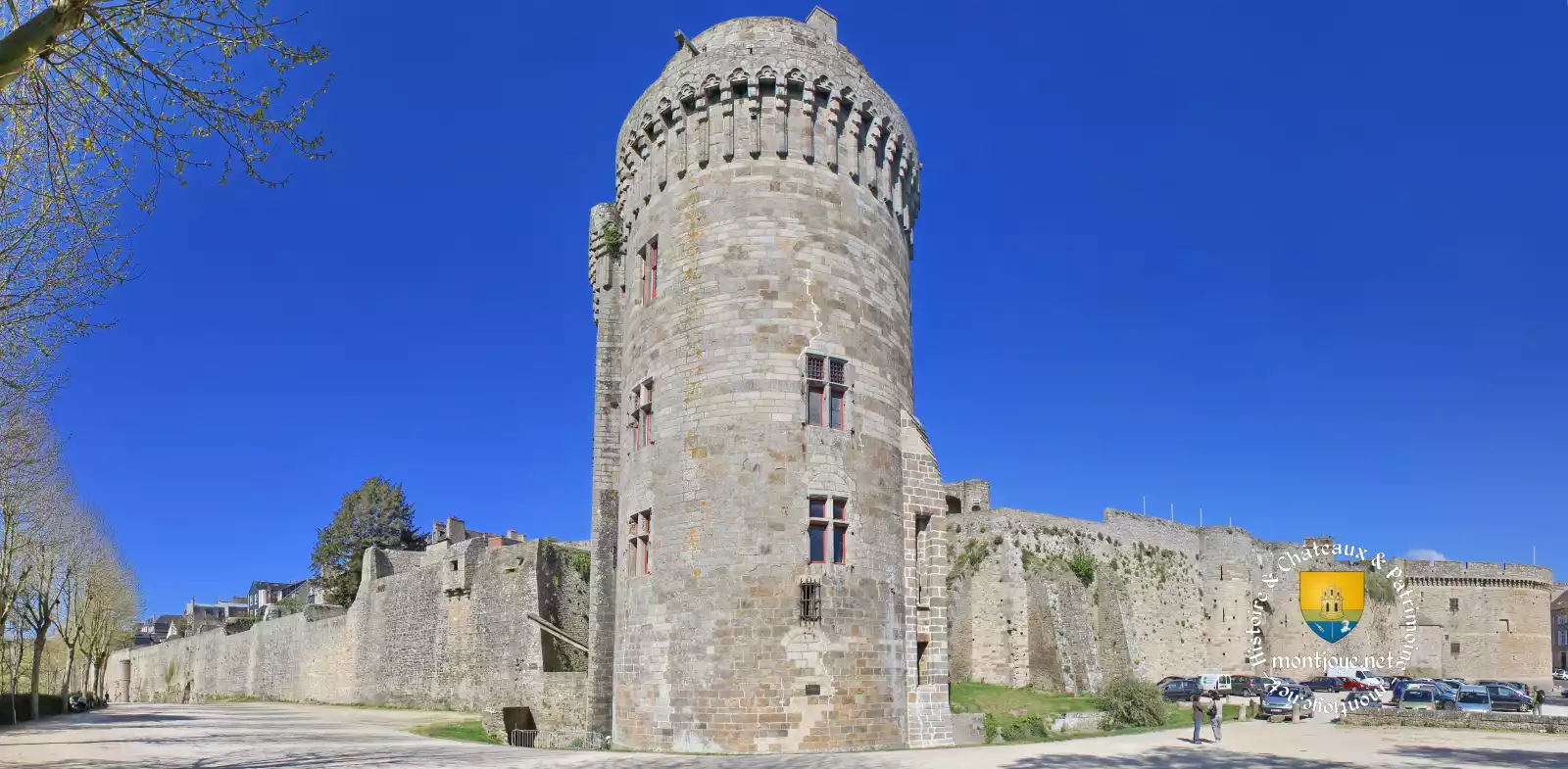 Pièce maîtresse de l’enceinte médiévale qui enserre la ville, le château de Dinan regroupe trois éléments réunis au 16ème siècle : la tour ducale construite au 14ème siècle et qui rivalise avec le château royal de Vincennes, la tour Coëtquen édifiée à la fin du 15ème siècle et la porte du guichet du 13ème siècle.