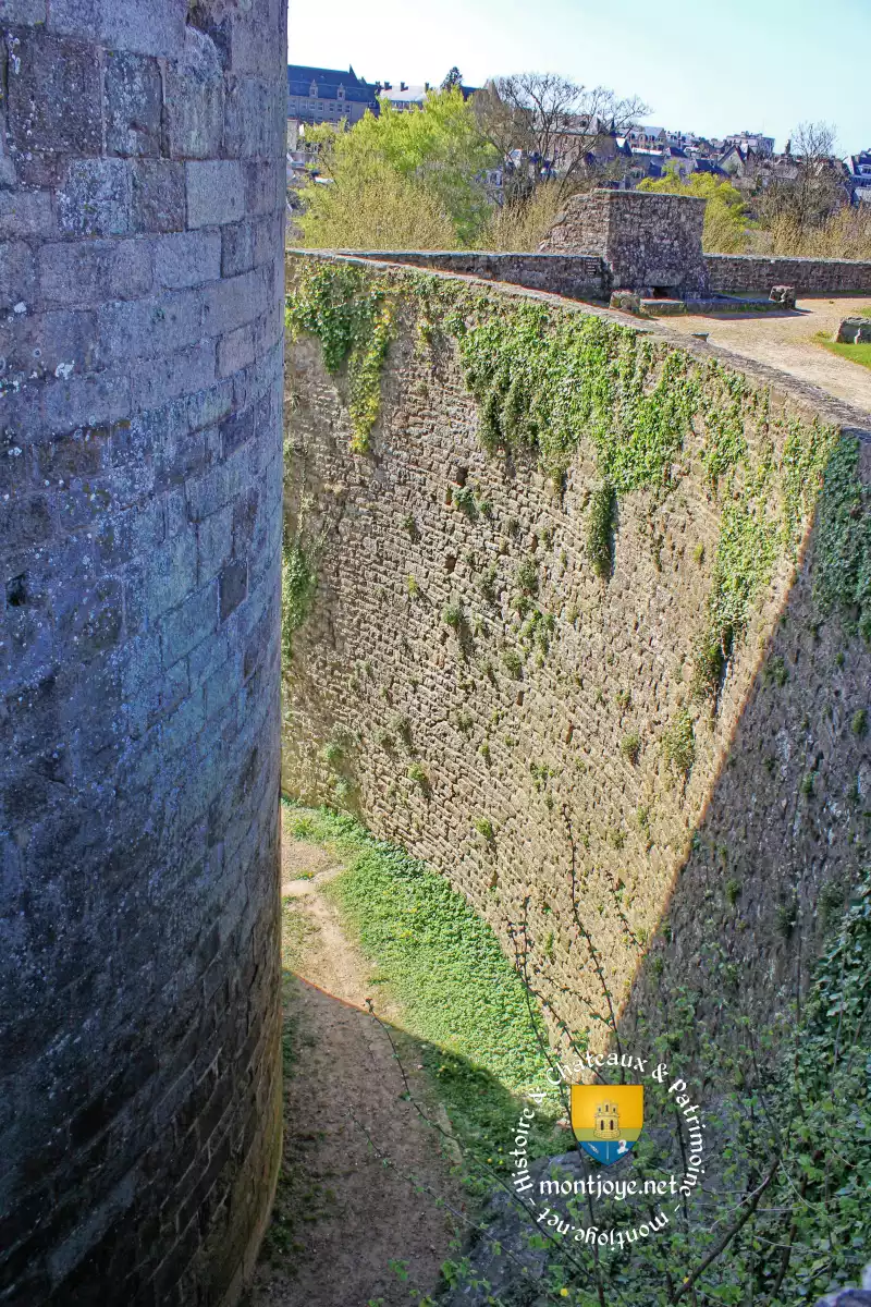 Dinan fut achetée en 1283 par le duc de Bretagne, Jean le Roux, c'est donc au XIIIe siècle que la ceinture de remparts de la ville prend naissance, même si une partie a été détruite l'enceinte actuelle reste assez massive sur 2.6 km.