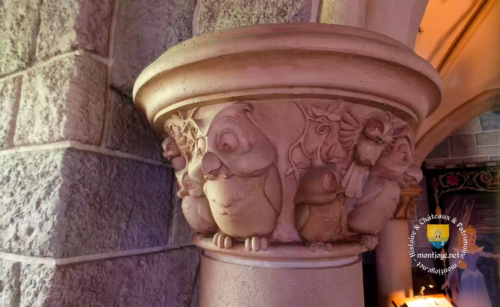 La plus haute des tours est dotée de deux vitraux lumineux de part et d'autre, donnant l'illusion que le château est habité. Cette caractéristique est un hommage à l'histoire des châteaux de la Loire, où l'illumination d'un vitrail signalait la présence du roi dans l'un des châteaux. SI vous cherchez un Parking Gratuit Disneyland Paris.
