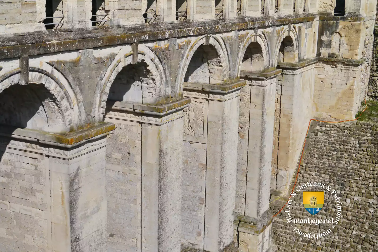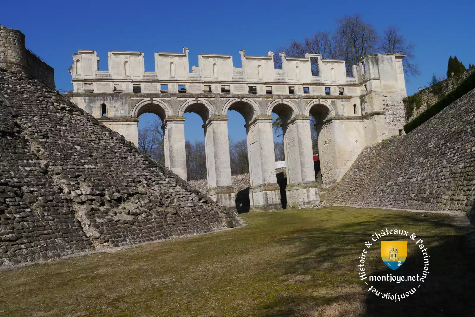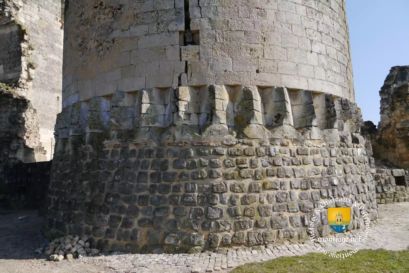 Cette partie du château est datée principalement du XIIIe siècle, un ensemble massif, avec un glacis imposant qu'on peut retrouver d'une certaine manière dans le Krak des Chevaliers en Syrie, on est sur le même état d'esprit, c'est à dire un glacis entourant l'ensemble de la forteresse, ce qui est rarement le cas.