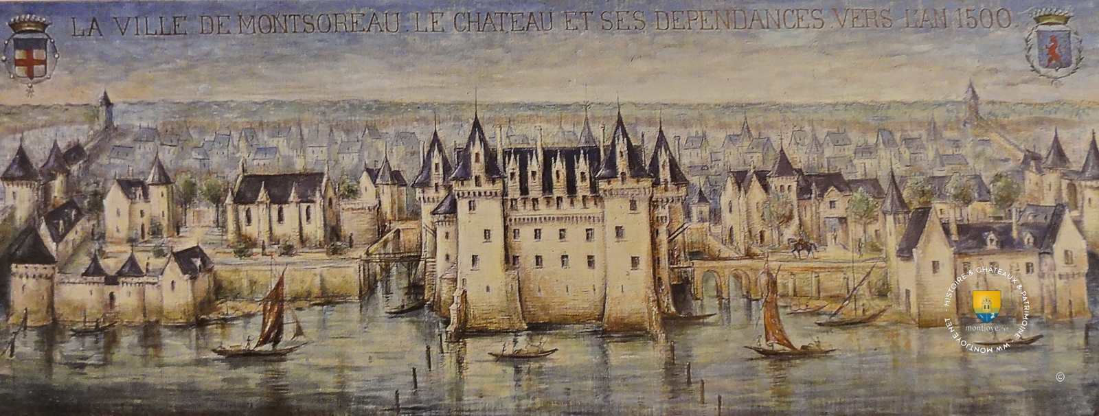 C’est en 1089 que le nom du château, dont le seigneur était Guillaume de Montsoreau, apparaît la première fois dans une charte, il est signalé comme un castrum de Monte Sorello. Guillaume de Montsoreau, étant vassal des Comtes d’Anjou, donne en 1101 à Robert d’Abrissel les terres où est édifiée l’Abbaye de Fontevraud.