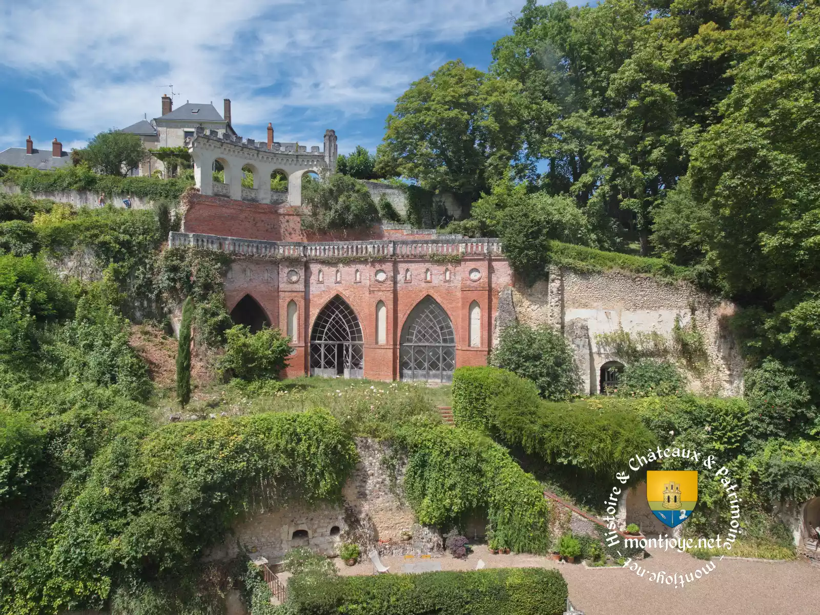 1830, Edification néogothique destinée à isoler le château du reste du village par Amédée de Nonant, les plans furent tracés et exécutés par M. Travers-Lefebvre pour un coût de 30 000 frs d’époque.