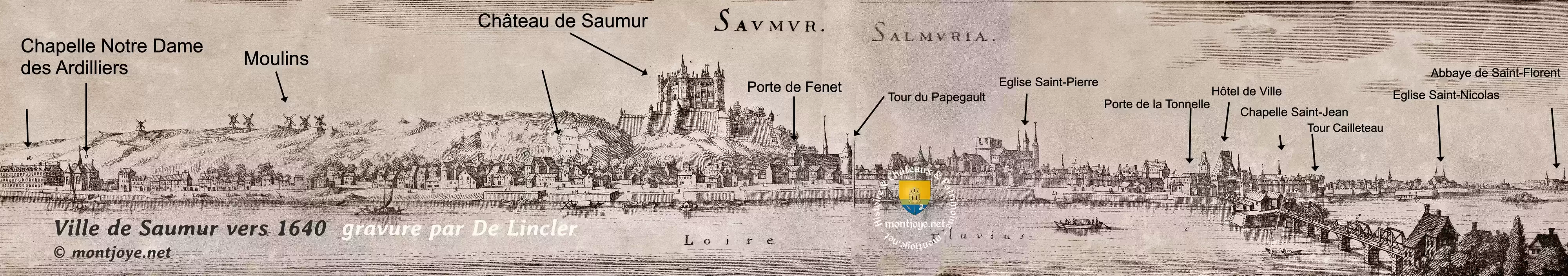 Gravure vers 1640, Ville de Saumur. La gravure se trouve à la BNF et au château de Saumur. Informations reprise de Saumur Jadis.