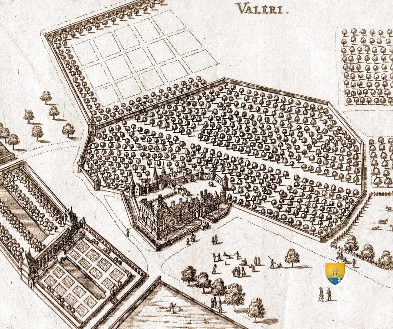 « Ce lieu de Vallery, seigneurie ainsi nommée, était autrefois un vieil château que feu le seigneur maréchal de Saint-André a enrichi et augmenté de son temps, de tout ce qui y a été fait de neuf, comme de présent apparaît. Le logis est élevé sur un tertre, au-dessus du bourg.