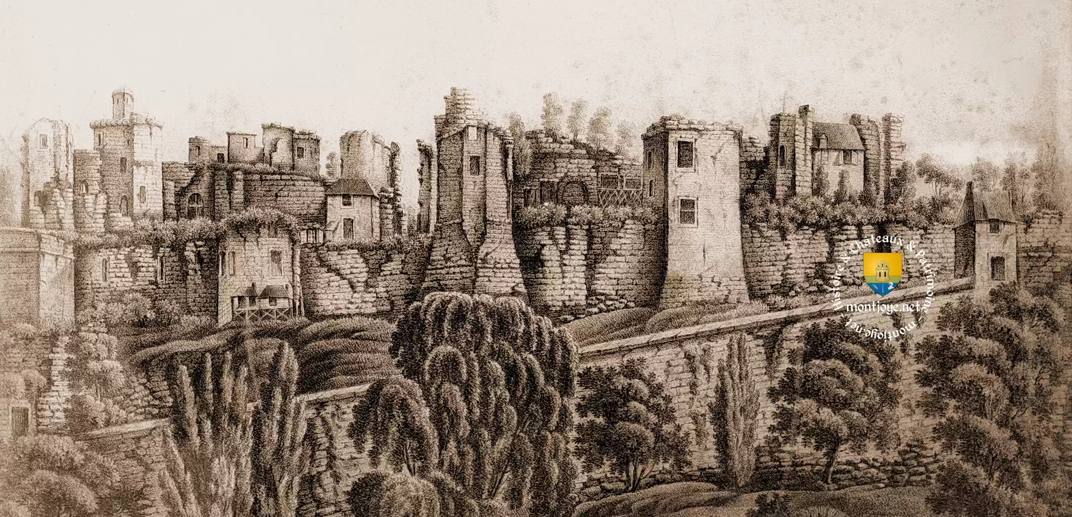 Dessin de 1790, pendant la révolution française. Dessin de Claude Gaspard-Dupuis professeur de dessin à Vendôme. On voit nettement la présence de la chapelle. On remarquera que le châtelet d'entrée est encore debout dans sa quasi intégralité et que l'ensemble est déboisé.