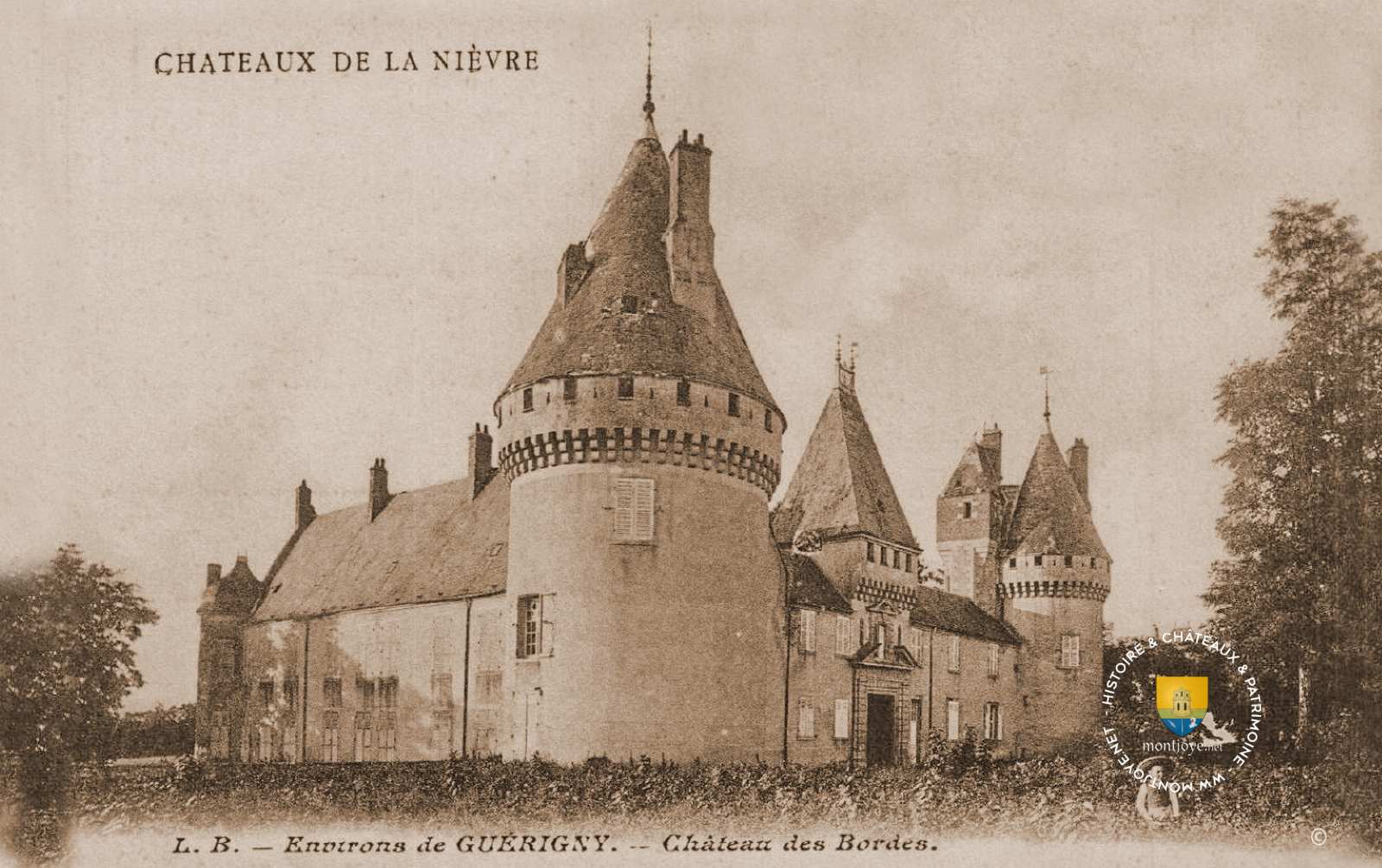 Le Château actuel des Bordes fut construit seulement au XVe siècle, sur le plan d'un Château fort. Ce château a remplacé une forteresse féodale, longtemps possédée par l'ancienne famille des Bordes, dont le premier représentant connu, Eudes des Bordes, vivait en 1254. A la fin du XIVe siècle. Péronnelle des Bordes, dernière héritière de cette maison, l'apporta par mariage dans la famille de la Platière. Louis de la Platière, son fils, en hérita en 1422, et le transmit à ses descendants. L'un d'eux, Philibert de la Platière, était chambellan de Pierre, duc de Bourbonnais et d'Auvergne, en 1488, et, en 1492, il fut délégué par ce prince pour tenir, à sa place, les Etats du Forez, avec lesseigneurs de Saint-André et d'Epinac, aussi ses conseillers. En 1573, Louis d'Ancienville, baron de Réveillon, devînt seigneur des Bordes, par son mariage avec Françoise de la Platière. La famille d'Ancienville s’éteignit à son tour, à la fin du XVIIe siècle, et les Bordes passèrent alors aux La Grange d’Arquien, auxquels succédèrent les Béthune. Au XIXe il a appartenu à H. Verain, de la ville de Moulins.