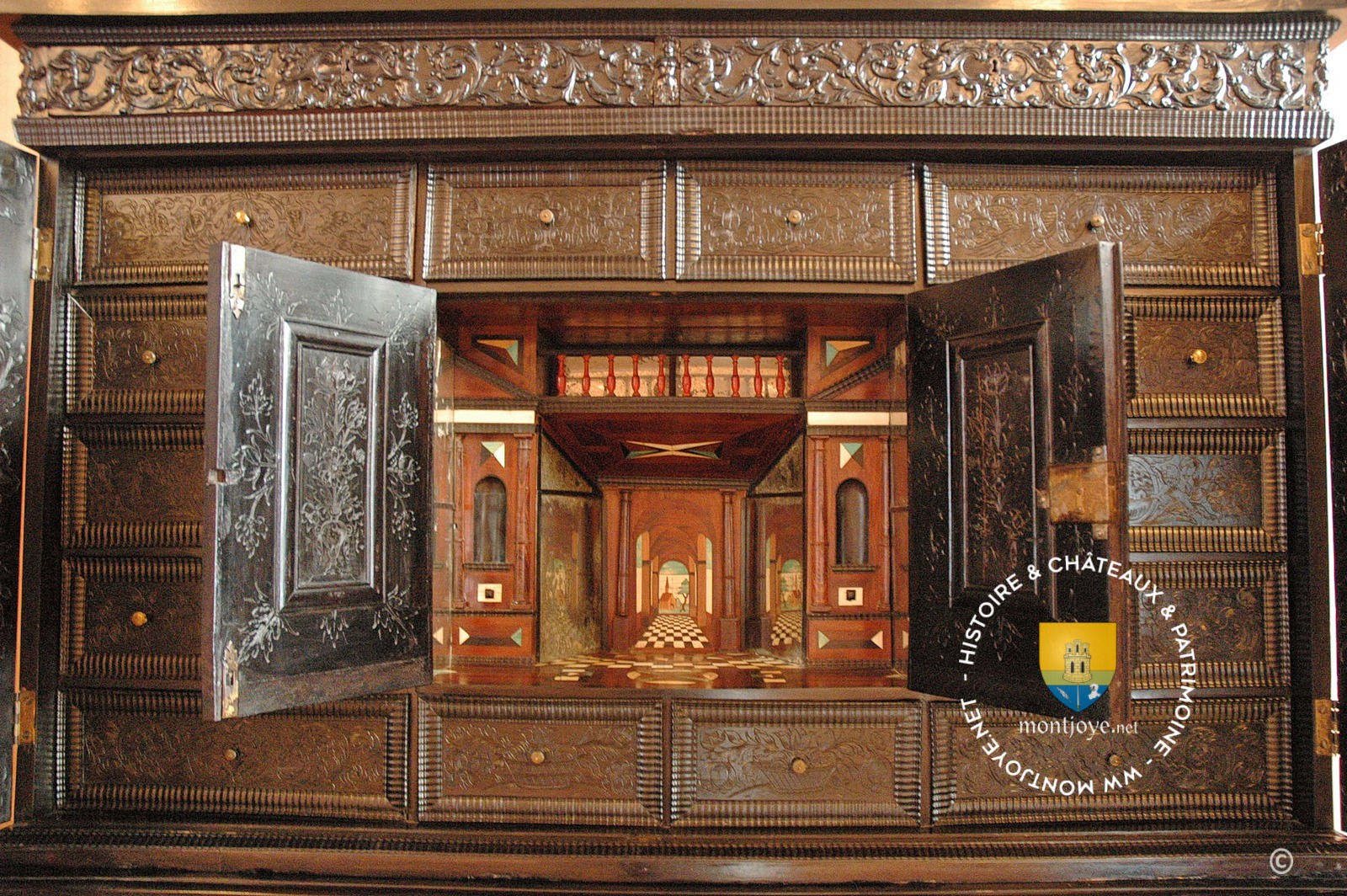 Les appartements n’ont conservé de leur décoration primitive que quelques restes de peintures sur les solives et les poutres des plafonds ; celles qui se voient encore sur quelques cheminées ont beaucoup souffert des nombreuses couches de badigeon dont on les a empâtées et qui ont été récemment enlevées.