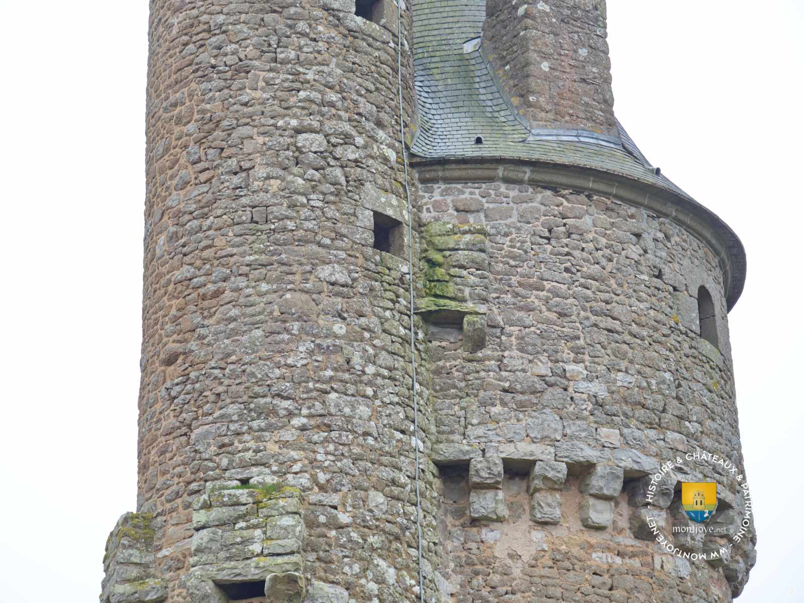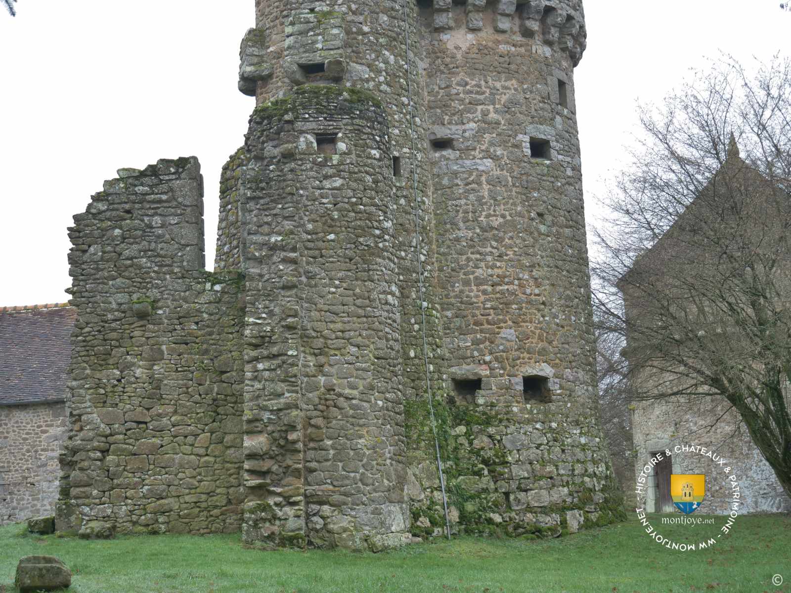 Cette construction un peu atypique semble tout droit venir du XIVe siècle et début XVe siècle. La tour de guet , assez rare en Normandie dans ce contexte, est assez courant dans le Bourbonnais où ces tours de guets accolées, ou fixées, sur le donjon sont monnaies courantes, voir Château de Billy ou Château de Hérisson.