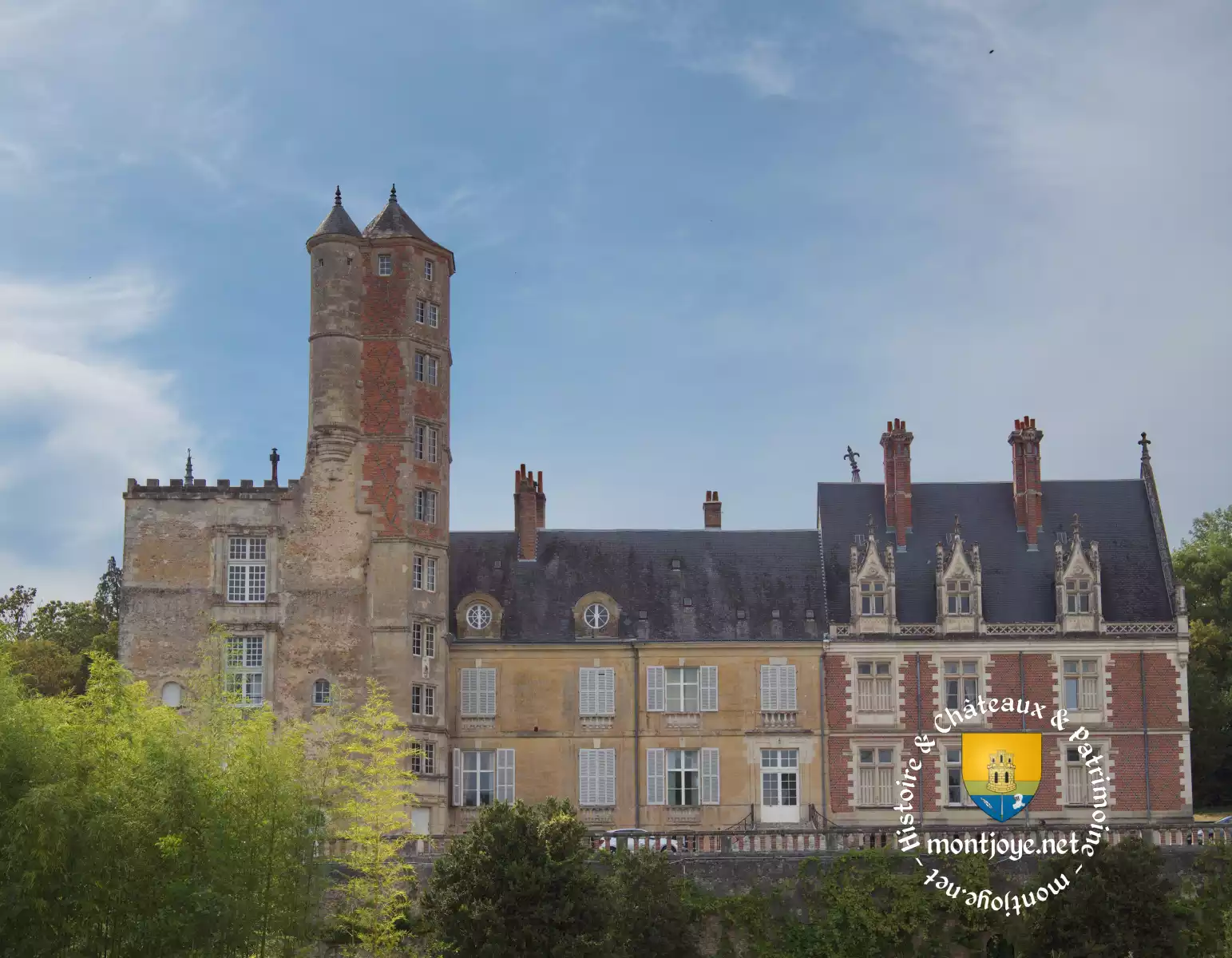 Le château de Beaumont, sur la gauche le donjon du XIIe siècle, la tourelle du XVIe siècle sur sa droite, au centre le logis du XVIIIe et totalement sur la droite le pavillon Néo-Renaissance du XIXe siècle.