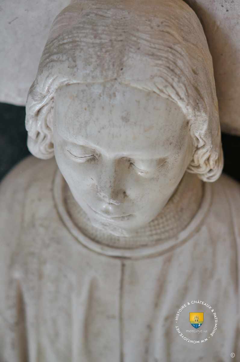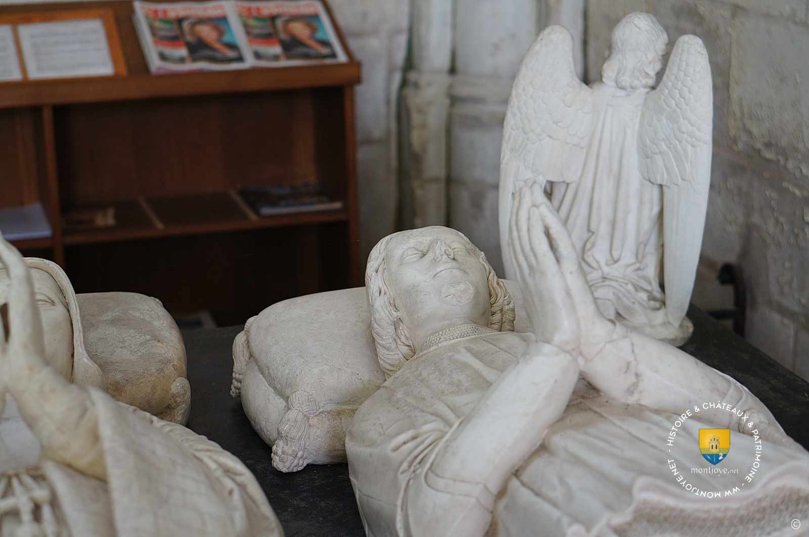 Imbert de Bathernay ( ou Batarnay ). Très beau gisant de la Renaissance, très travaillé et d'une grande qualité d'exécution. On peut rapprocher ce type de gisant avec ceux qu'on trouve à la Basilique de Saint-Denis pour cette même période. On remarquera que le gisant d'Ymbert est situé juste à côté de sa femme et de son fils alors vivants lors de sa mort. Il s'agit là probablement d'un hommage familial et d'y apporter également un aspect dynastique important. Il est assez rare de voir les enfants situés sur le même support du gisant dès l'origine.