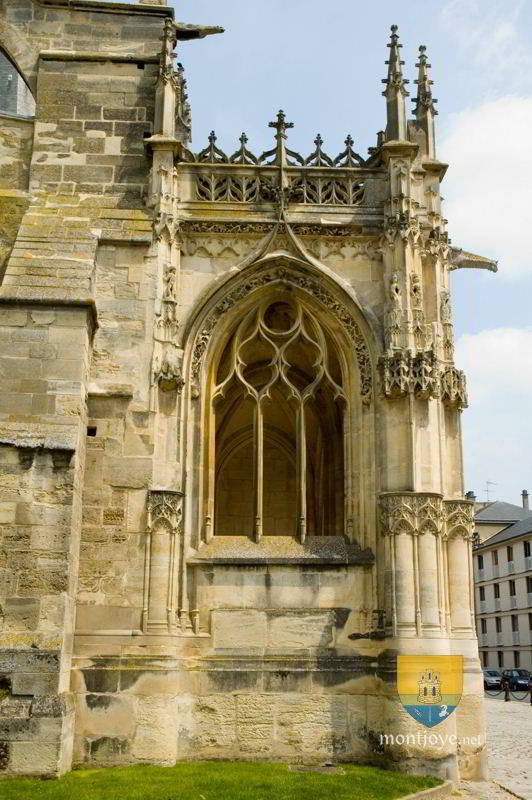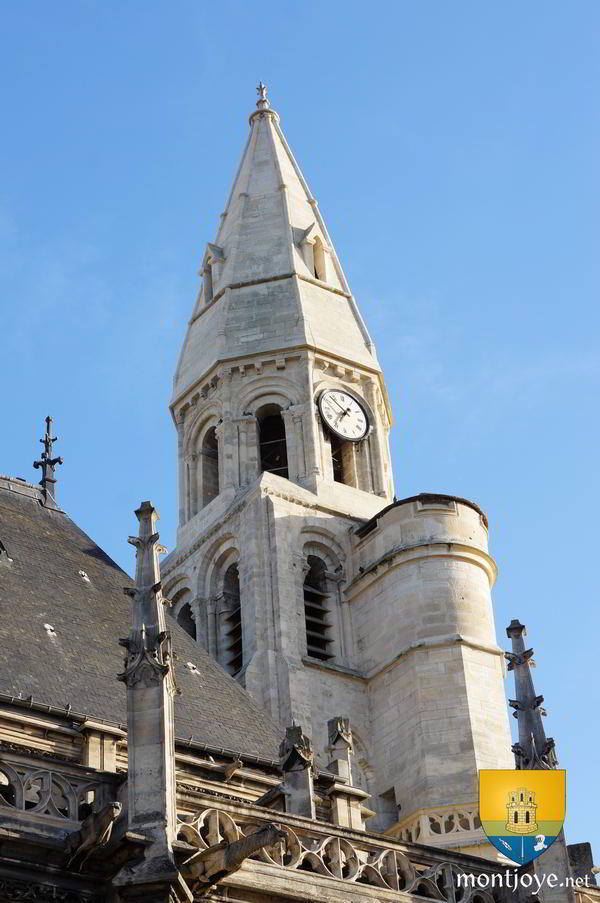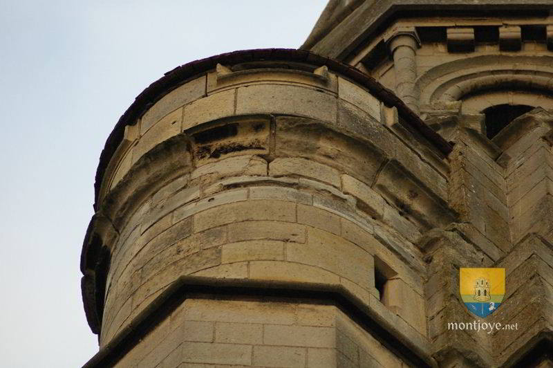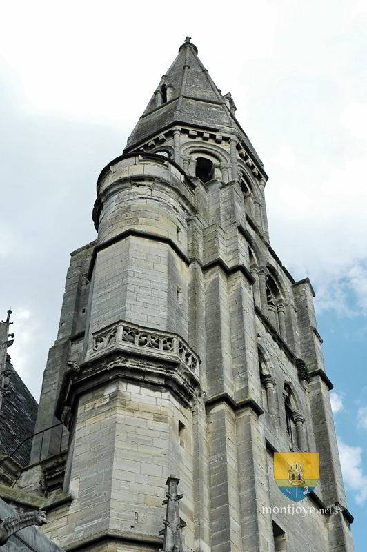 Clocher occidental de la Collégiale de Poissy, on remarque sur la gauche la tourelle défensive