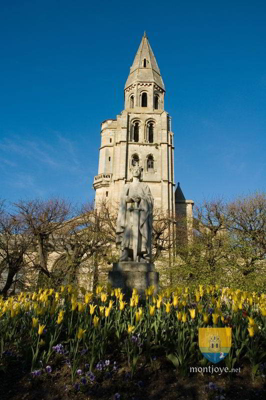 La tour dite « occidentale » qui devait être rattachée probablement à une partie du Château royal est composée de moyens de défenses certes sommaires. On peut voir notamment sur la gauche une tour de garde accouplée au clocher. Le côté massif de la tour laisse présager une certaine lourdeur mais surtout une solidité importante qui a défié le temps. Elle est datée du XIe siècle.
